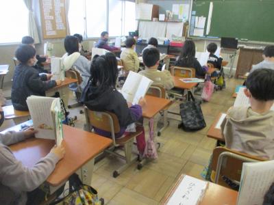 静まり返った教室の扉を開けると、1年生が「ずうっとずっと大すきだよ」というお話の朗読音声を聞いていました。