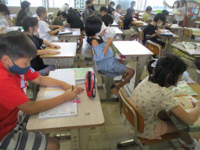 夏休みの家庭生活に向けての話では、計画的に学習を進め、運動にも取り組みたいこと。