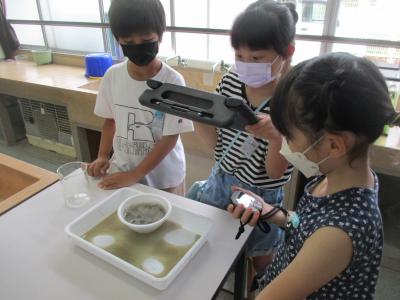 先日の雨のときに、運動場の雨水を観察していたので、今回は早速実験に入ります。