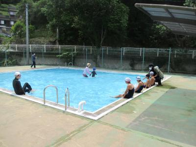 梅雨の間の晴れ間に、3,4,5組がプールでの授業を行っていました。