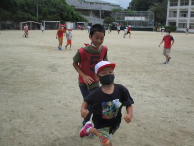 時間いっぱい汗びっしょりになって遊んだ子どもたちは、満足げに校舎に戻っていきました。