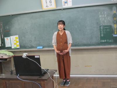 画面を通してですが、子どもたちは、先生のおなかが大きくなっていることを改めて知ることができました。