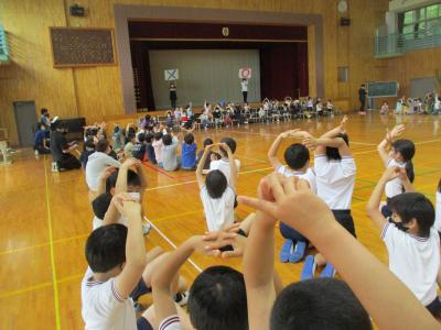 10日(火)の児童朝会に向けて、リハーサルをしています。