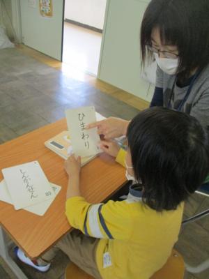 先生の指示を聞いて、指示どおりのイラストを取ってくる練習です。