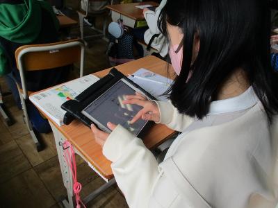 タブレットでeライブラリを使ったりプリントを使ったりしながら学習を進めています。