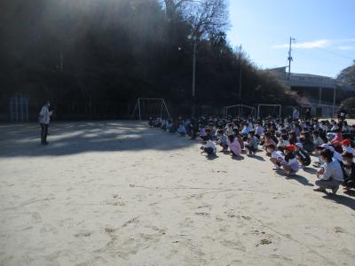 運動場にいる子たちは、一瞬戸惑ったようです。。