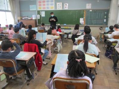 担任の先生が読み聞かせをしています。