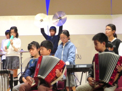 演奏終了後、会場から大きな拍手を受けた音楽部のみなさん。