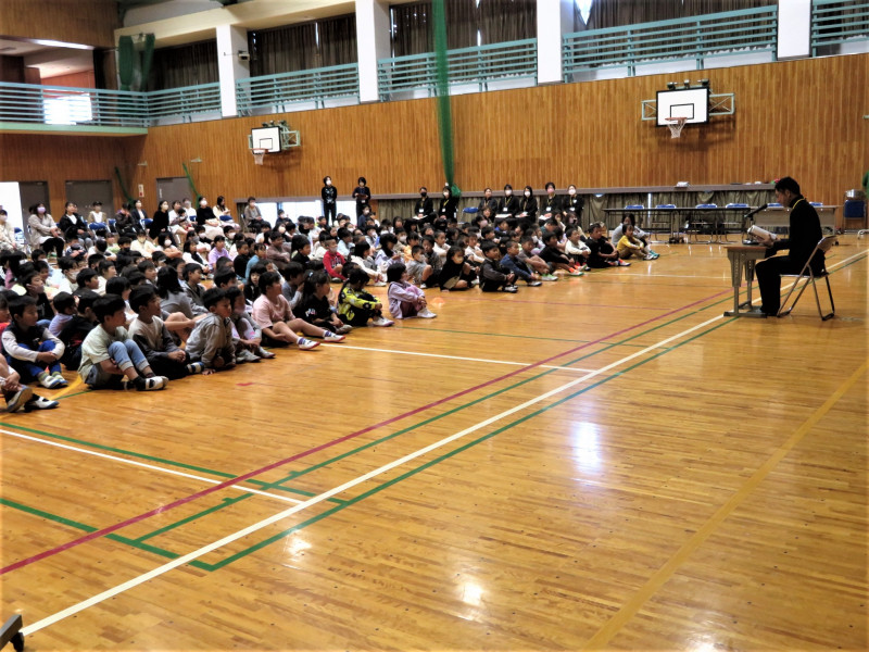 読書集会 2023年10月25日 12時18分 10月25日(水)の2校時、読書集会が行われました。 はじめに各学年の読書標語の発表と図書委員会の「おすすめの本」紹介がありました。 続いて読み聞かせボランティア「たまてばこ」のみなさんによる楽しい読み聞かせや絵本シアターがありました。 そして、各学年の多読賞の表彰もありました。 10月27日(金)から11月9日(木)は、読書週間です。 今年の読書週間の標語は「私のペースで しおりは進む」です。 自分のペースを見直す時間として、みなさんも本を手に取ってみてはいかがでしょうか。